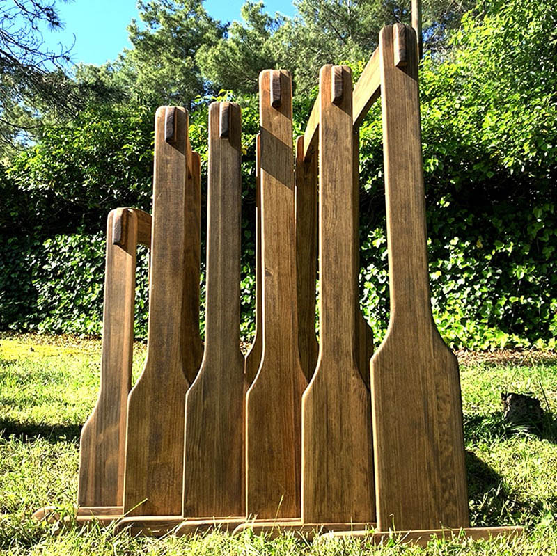Seleccionamos maderas muy robustas. Para nuestros soportes, seleccionamos el Pino de Flandes, una madera de pino conocida por su resistencia y Belleza. para sostener sin problemas el peso del Gong. Las maderas están tratadas con aceites de lino.
